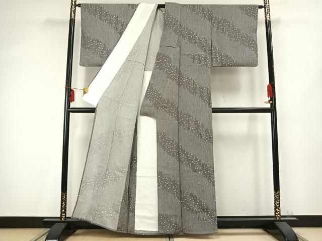 平和屋着物 上質な小紋 単衣 舞花文 縞 正絹 AABC0425fy GLOBALQUALITYIMPORTS_COM