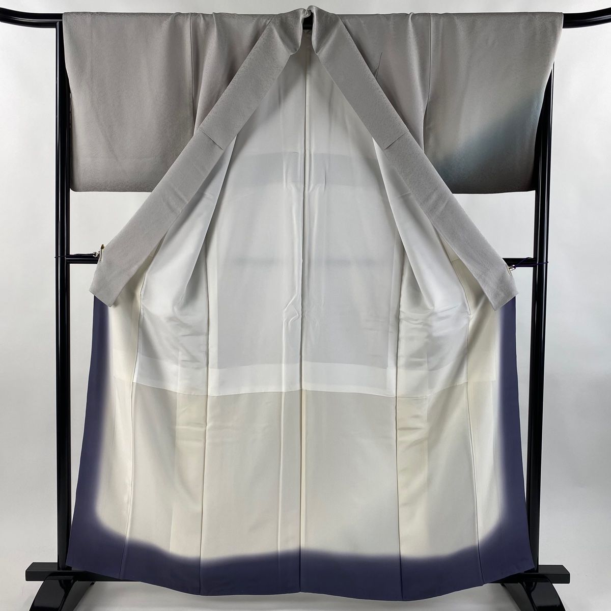訪問着 身丈157cm 裄丈63cm S 袷 紬地 落款 縞 霞 ぼかし 灰紫 正絹 秀品