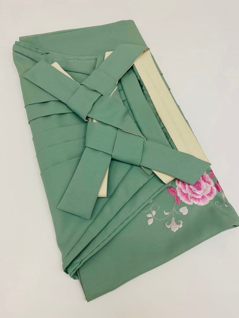 袴 S size 紐下丈86cm 行灯袴 卒業袴 女性用袴 刺繍 ぼかし 緑 4743
