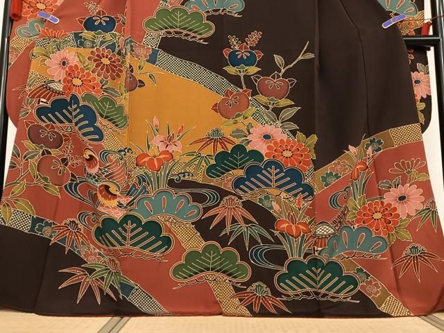 平和屋着物 豪華振袖 総絞り 草花文 黒地 正絹 DAAW5843ud