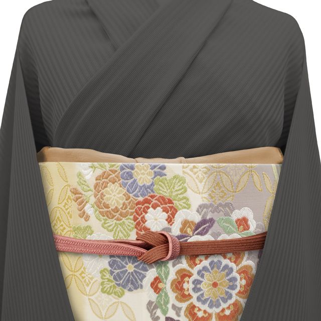 袋帯 リサイクル フォーマル 正絹 唐織 京都 西陣 有職万彩 象牙色 灰紫 黄茶 華文 波文 桜 菊 梅 椿 草花 金糸 金箔糸 セミフォーマル 春 秋 冬 仕立て上がり みやがわ sb54523 GLOBALQUALITYIMPORTS_COM