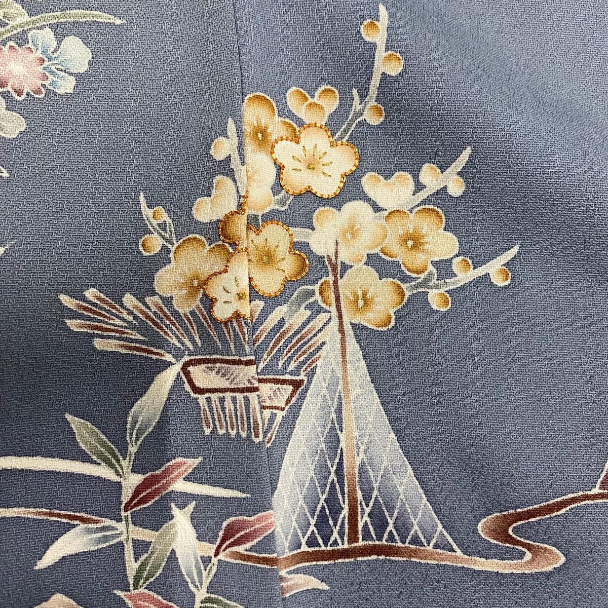 訪問着 身丈158cm 裄丈65cm M 袷 松竹梅 家屋 刺繍 金糸 灰色 正絹 秀品の検索結果