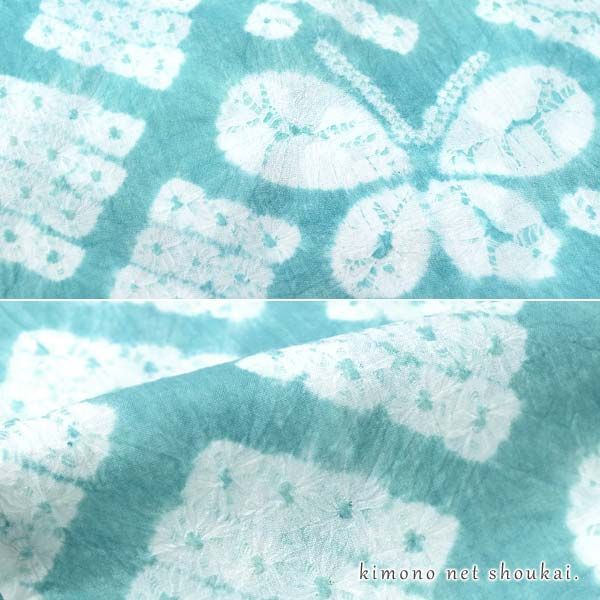 レディース 絞り浴衣 TLサイズ 水色 ラムネブルー 格子に胡蝶 15632 単品 仕立て上がり 女性用 ゆかた 夏着物 GLOBALQUALITYIMPORTS_COM
