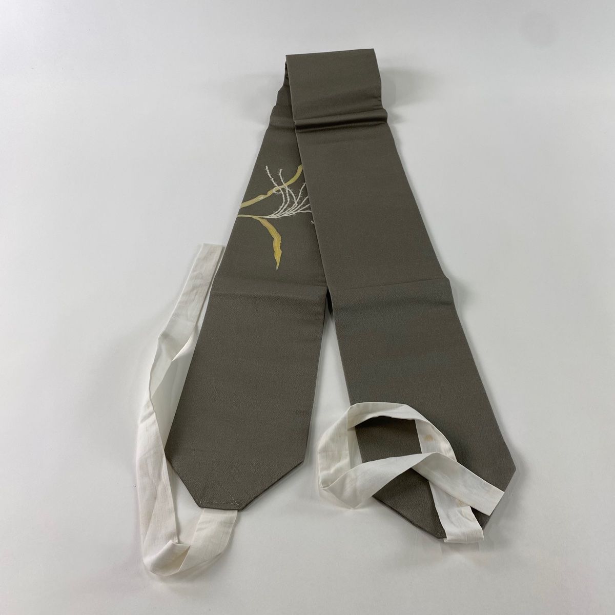 付け帯 落款 作り帯 鳥 すすき 銀通し 灰茶 正絹 GLOBALQUALITYIMPORTS_COM