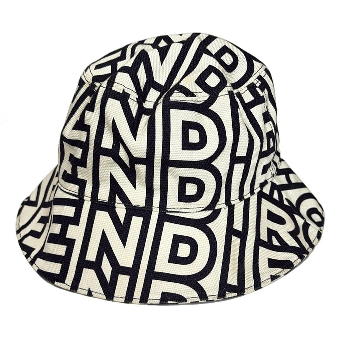 FENDI フェンディ ハット 58 - FX910 AMVS アイボリー×黒 ×MARC JACOBS ロゴ総柄 コットン GLOBALQUALITYIMPORTS_COM