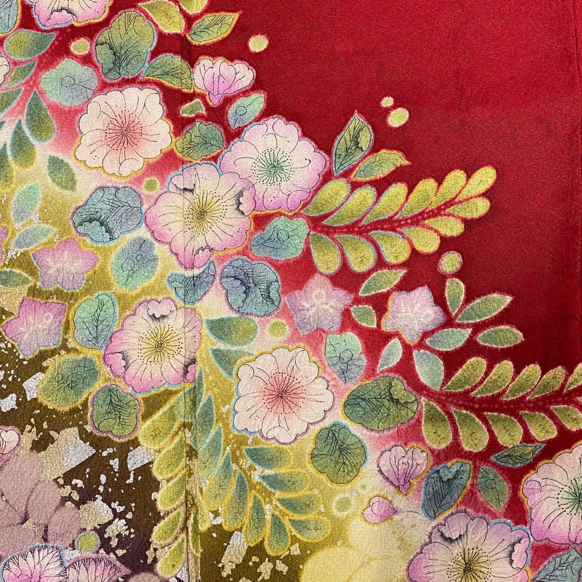振袖 身丈161cm 裄丈66.5cm M 袷 やまと 辻が花柄 金銀彩 ぼかし 赤 正絹 名品の検索結果