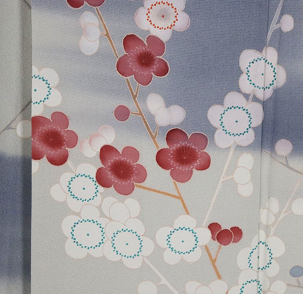 訪問着 袷 正絹 水色 グレー 暈し 梅 Mサイズ ki31162 ほうもんぎ レディース シルク フォーマル 30代 40代 50代 み GLOBALQUALITYIMPORTS_COM
