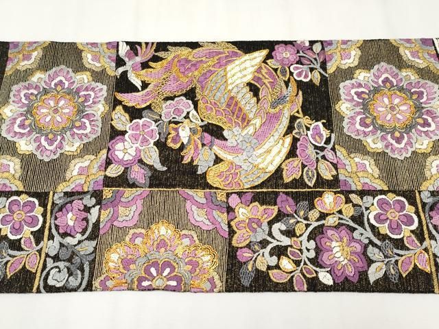 平和屋本店 上 京の名門 じゅらく謹製 帝王紫 袋帯 総刺繍 駒刺繍 鳳凰草花文 黒地 金糸 CYAA3778s5 GLOBALQUALITYIMPORTS_COM