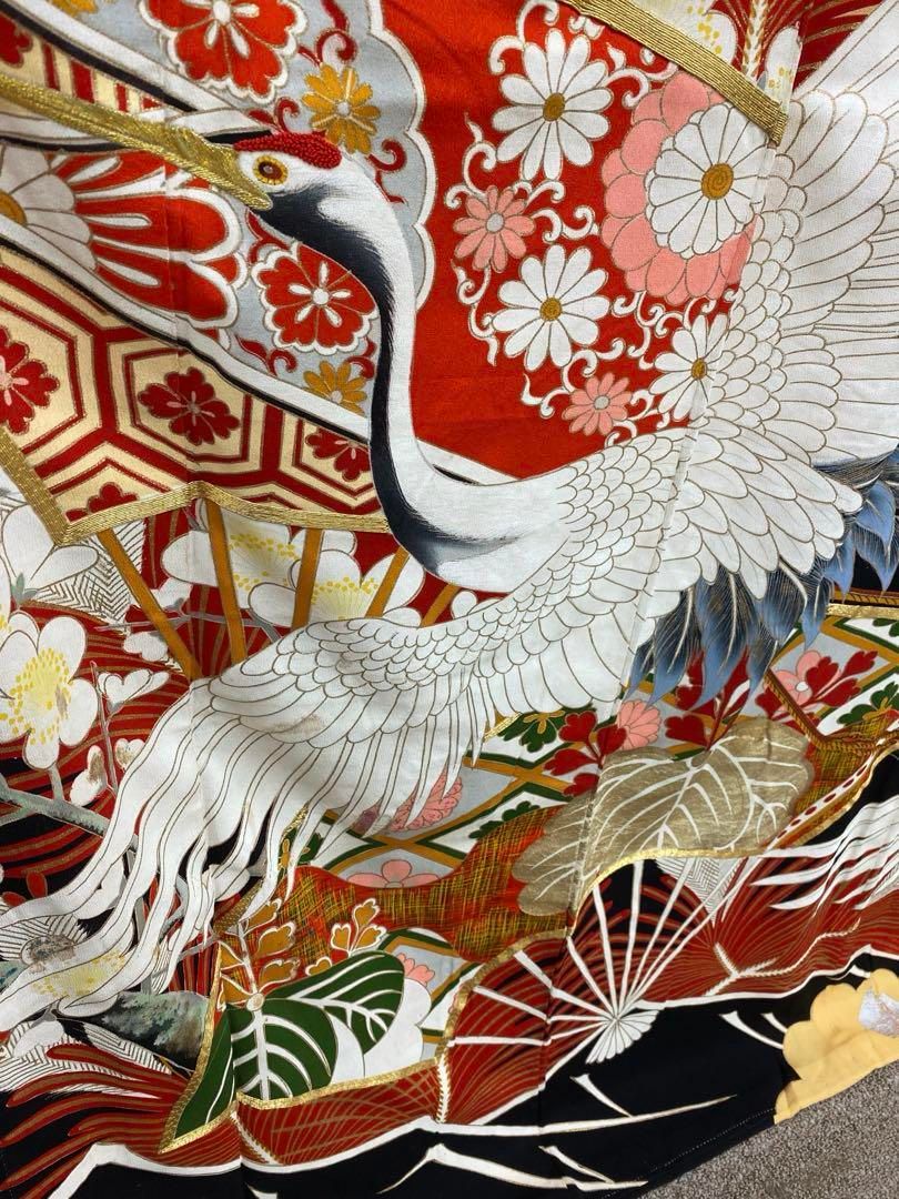 アンティーク 振袖 金駒 金彩 銀彩 相良刺繍 鶴 正絹 身丈169cm 紋付 GLOBALQUALITYIMPORTS_COM
