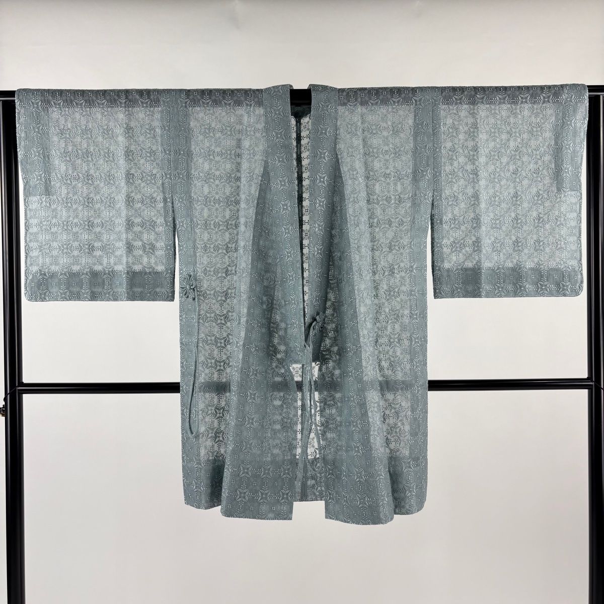 道中着 身丈92cm 裄丈64.5cm M 和装コート 着物衿 格子 華文 灰緑 正絹の検索結果