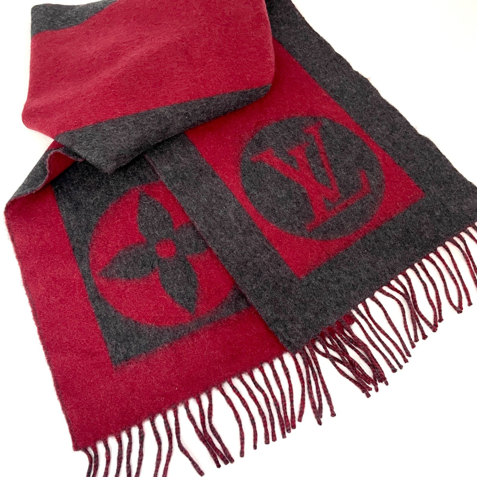 レベル ルイヴィトン エシャルプ カーディフ マフラー ウール アンゴラ 秋冬 男女兼用 ユニセックス レッド×グレー 8211 GLOBALQUALITYIMPORTS_COM