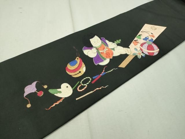 平和屋着物 アンティーク 大正ロマン 総刺繍 九寸名古屋帯 唐子遊び 黒地 金銀糸 正絹 CAAW5673vpの検索結果