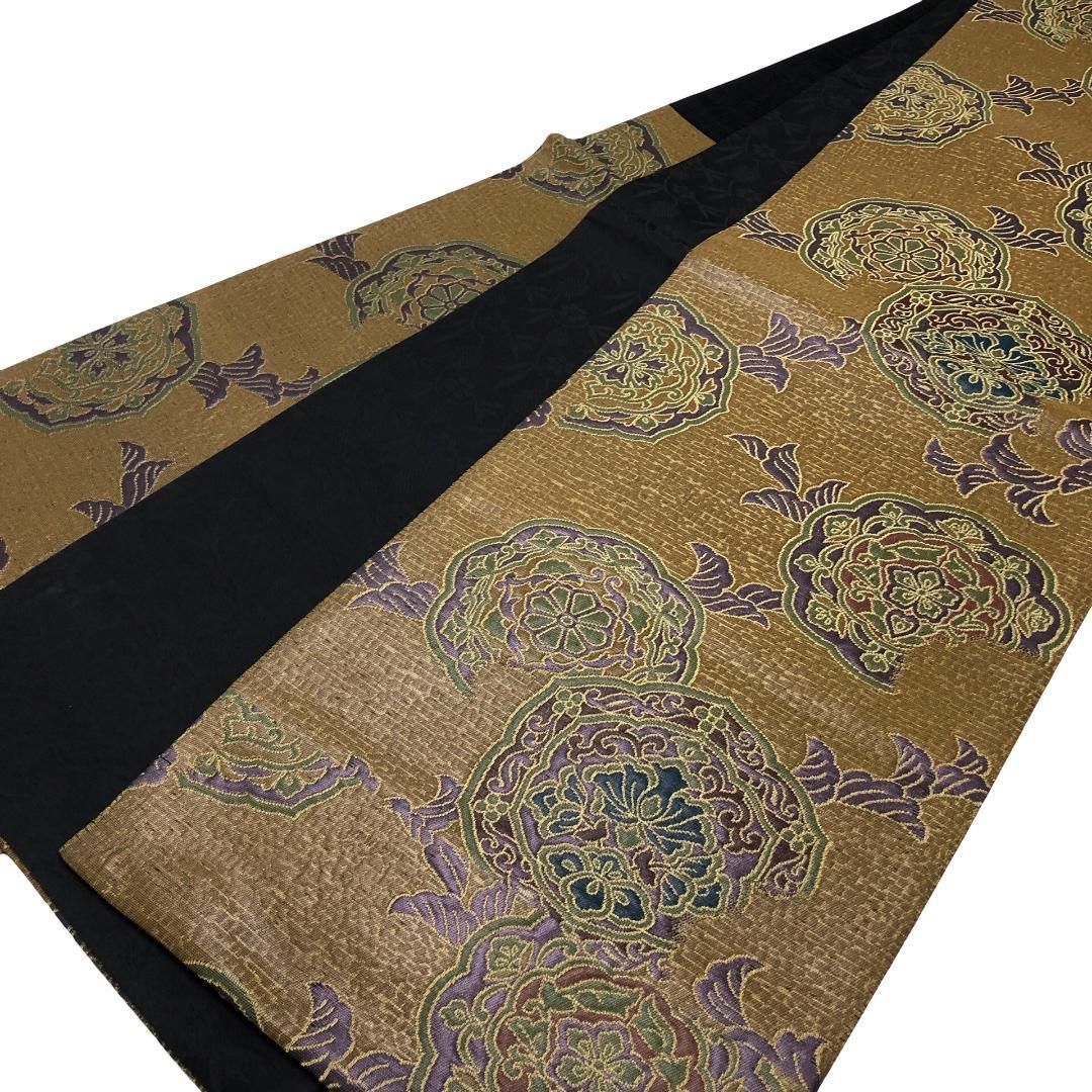 袋帯 落ち着いた色彩の華柄模様 金糸 路考茶色 O-5633 GLOBALQUALITYIMPORTS_COM