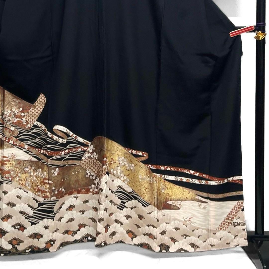 黒留袖 五つ紋 比翼付き 金彩 金駒刺繍 松 熨斗 巻物 花 着物 103b dの検索結果