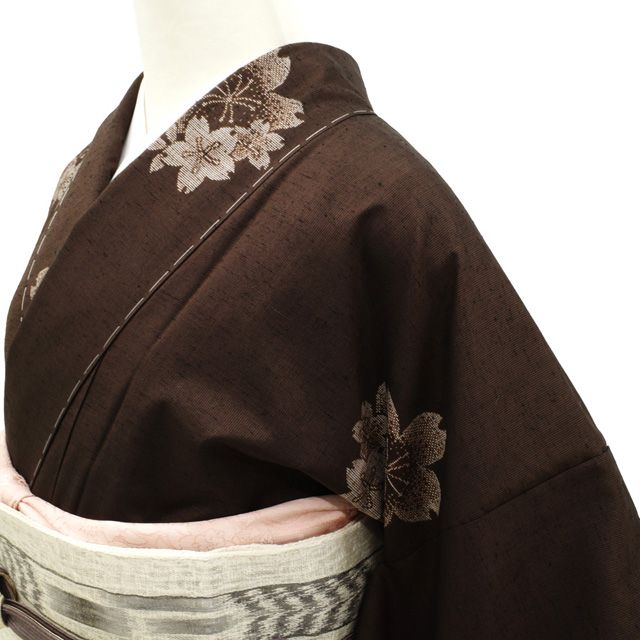 新古品 本場奄美大島紬 本場大島紬 着物 正絹 愛加那絣 牧絹織物 芭蕉染 手織り こげ茶地 桜 さくら 花柄 花 カジュアル 春 秋 冬 仕立て上がり 大島紬 復元 紬 真綿紬 身丈160 裄丈66.5 Mサイズ みやがわ sb16403 GLOBALQUALITYIMPORTS_COM