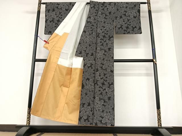 平和屋着物 本場大島紬 草花文 黒地 正絹 AABA0360zgの検索結果