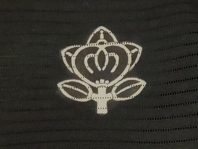 着物 羽織り 黒 家紋入り 花柄 四つ目 レディース 女性やや傷や汚れあり