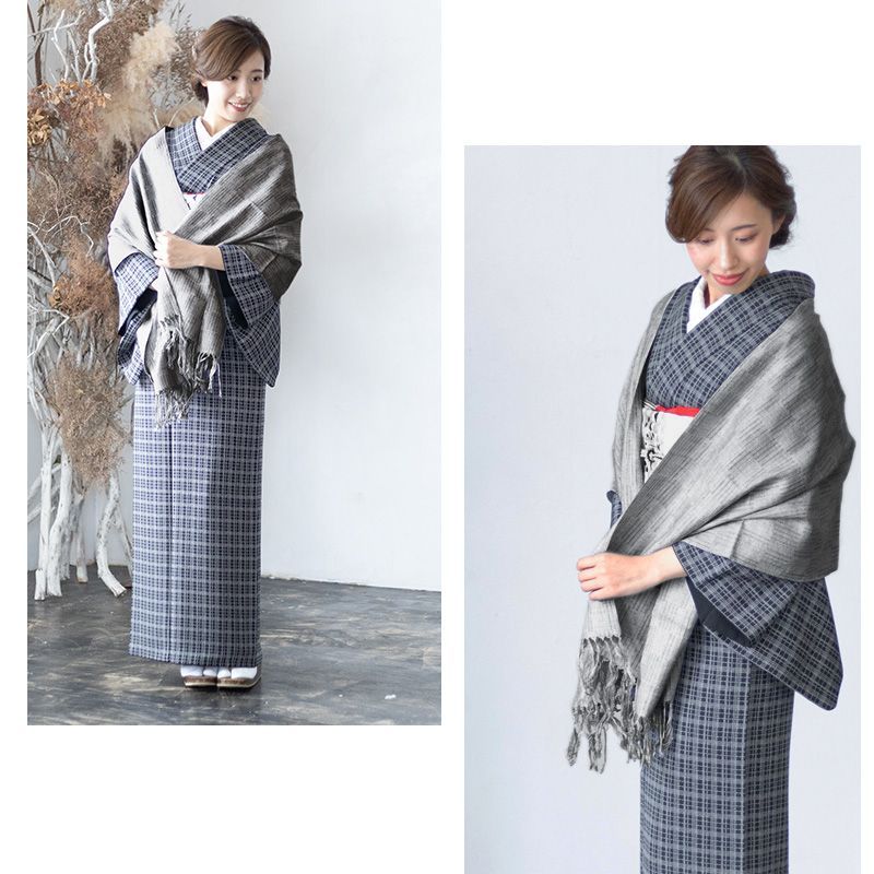 結城紬 ショール 真綿 ストール フリンジショール 絹100% シルク100% 着物 洋服兼用 まわた ショール 奥順 結城紬 育てるショール 網代 あじろ 〔2色〕 10011142 GLOBALQUALITYIMPORTS_COM