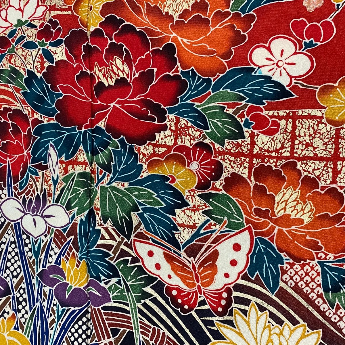 振袖 身丈162cm 裄丈64.5cm M 袷 草花 蝶 金銀彩 染め分け 赤 正絹の検索結果