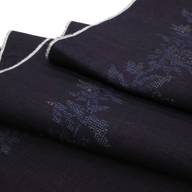 新古品 重要無形文化財 本場結城紬 反物 地機 手織り 正絹 黒紺 ブラックネイビー ダークネイビー 草花柄 80亀甲 結城紬 上 カジュアル 春 秋 冬 未仕立て みやがわ sbs16503 GLOBALQUALITYIMPORTS_COM