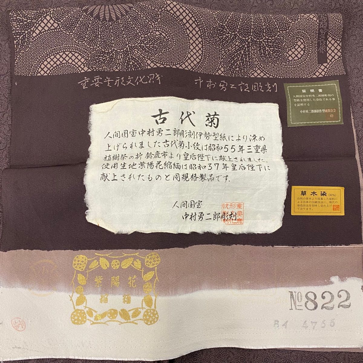 江戸小紋 身丈155cm 裄丈62cm S 袷 人間国宝 中村勇二郎 落款 証紙 古代菊 茶紫 正絹の検索結果