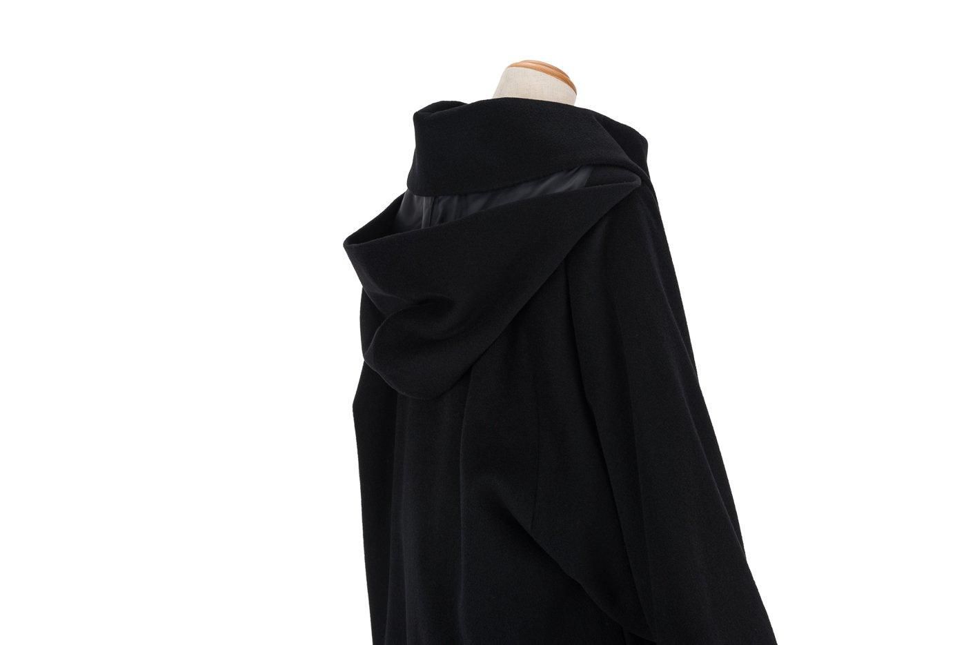 フード付き和装コート カシミヤブレンド 黒 GLOBALQUALITYIMPORTS_COM