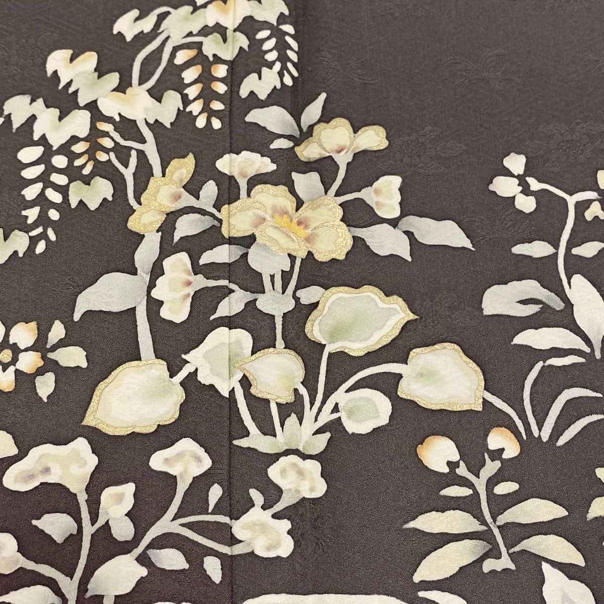 付下げ 身丈162cm 裄丈66cm M 袷 やまと 落款 草花 花丸文 金銀彩 ぼかし 濃紫 正絹 秀品