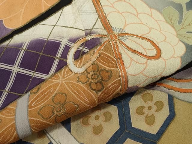 平和屋着物 アンティーク 大正ロマン 黒留袖 駒刺繍 几帳貝合わせ花文 暈し染め 金彩 正絹 CAAZ0946vfの検索結果