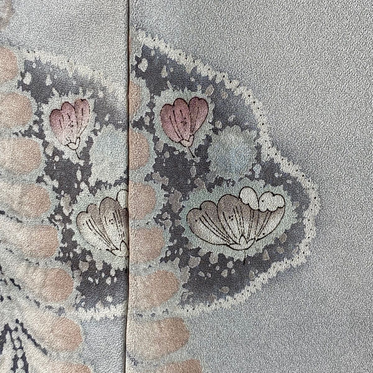 訪問着 身丈164cm 裄丈64cm M 袷 草花 動物 金彩 灰色 正絹 秀品