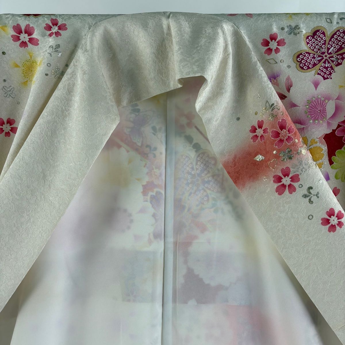 振袖 身丈166cm 裄丈67cm M 袷 草花 蝶 金銀彩 銀通し クリーム 正絹の検索結果