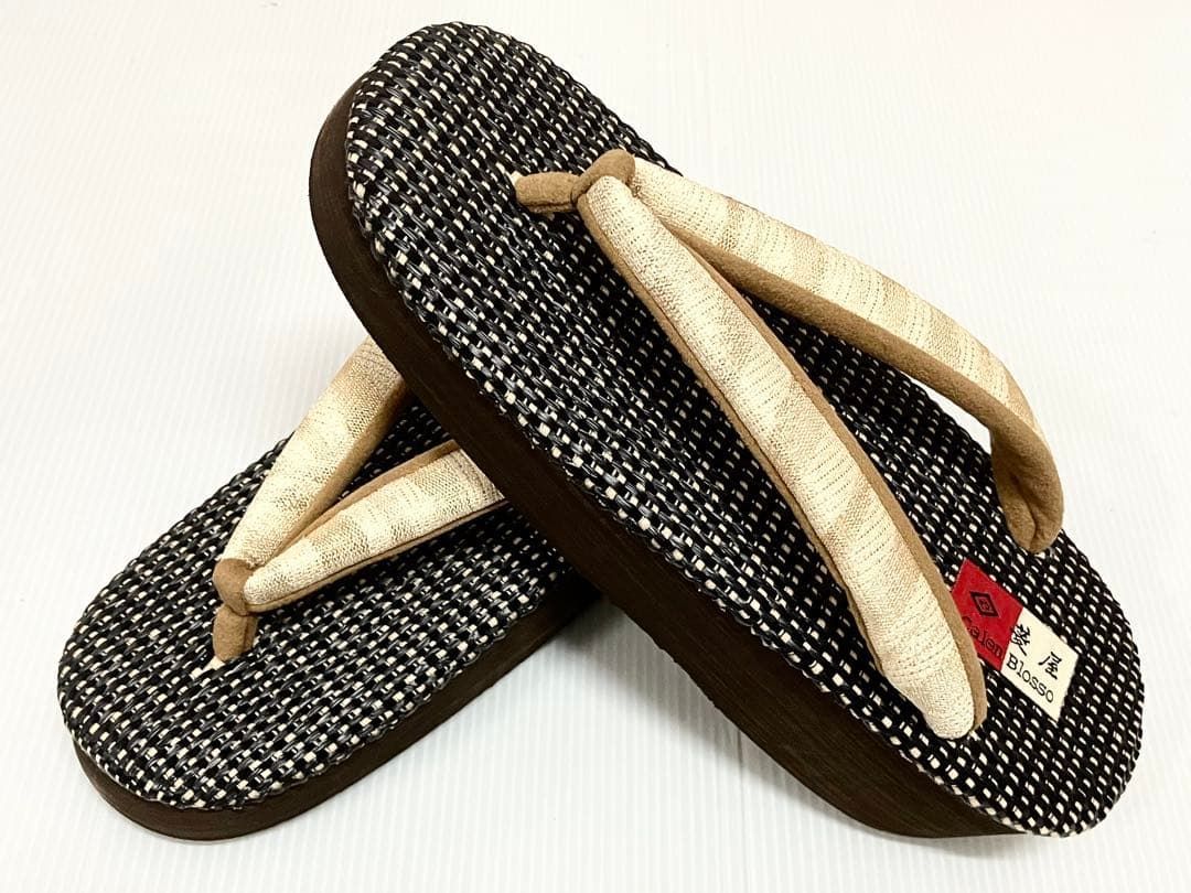 sa3411 菱屋カレンブロッソ 博多織 鼻緒使用 カフェ草履 墨色 ビブラムソール Mサイズ