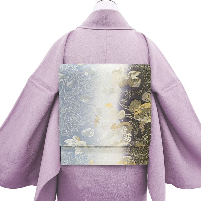 新古品 袋帯 フォーマル 正絹 京都 西陣 金華山織 金銀糸 スモークブルー ライトグレー 黒紫 3色 ぼかし 葡萄 蔦 春 秋 冬 上 袋帯 仕立て上がり みやがわ sb54520 GLOBALQUALITYIMPORTS_COM