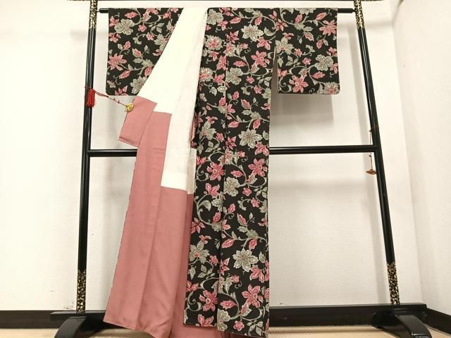 平和屋着物 上質な小紋 更紗花文 黒地 正絹 AABC6840phの検索結果