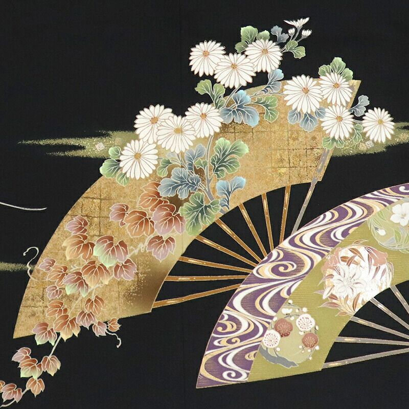 黒留袖 販売 単品 礼装 着物 和装 フォーマル 正絹 黒 丸に三つ柏 扇文 鶴 身丈166cm 裄丈65.5cm 結婚式 母親 M Lサイズ相当 リサイクル着物 リユース着物 着物の検索結果