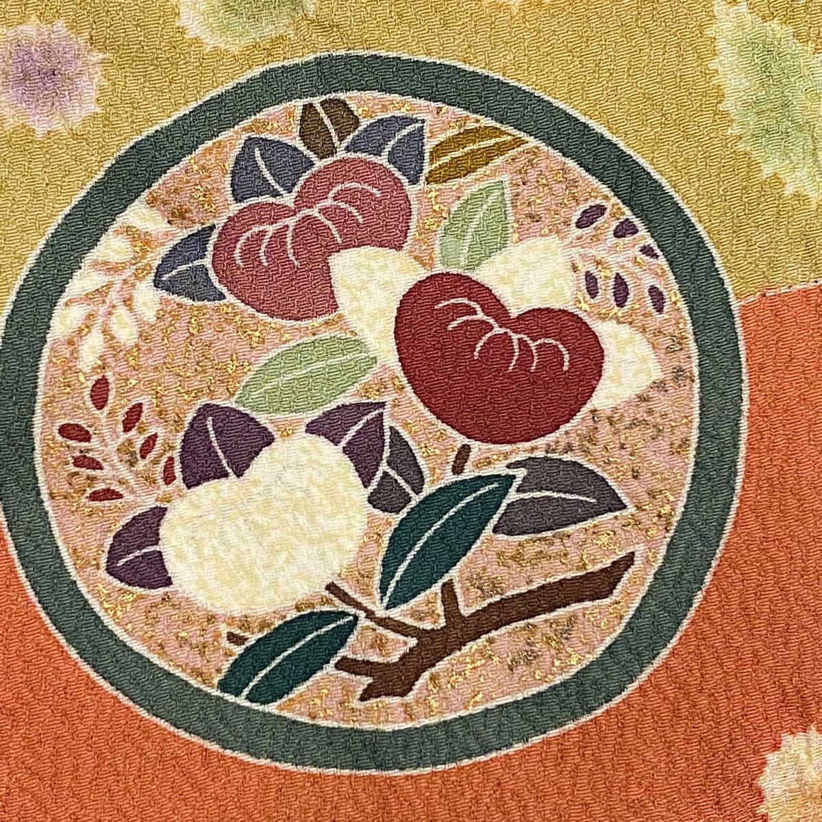 訪問着 身丈171.5cm 裄丈68cm L 袷 花丸文 菊 金彩 茶緑色 正絹 秀品