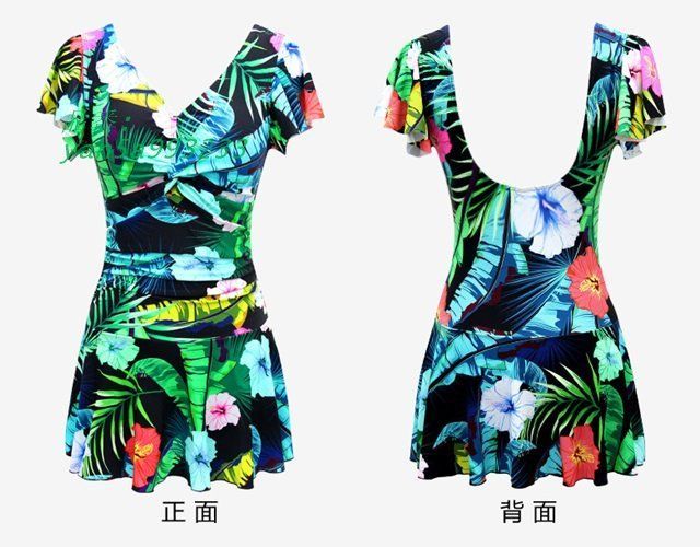 ワンピース水着 エスニック Vネック 服みたいな 水着 半袖 写真映え L 着痩せ 撮影用 夏マルチM レディース 海 セクシー パッド付 XL レトロ風 vii4w449152