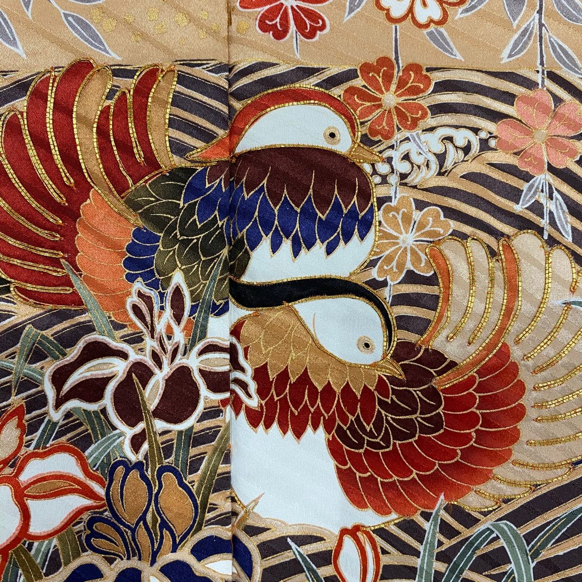 振袖 身丈168cm 裄丈64cm M 袷 落款 鴛鴦 草花 金糸 金彩 灰茶 正絹 秀品の検索結果