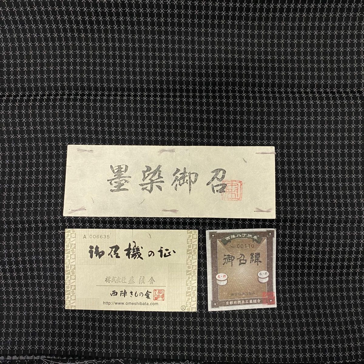 お召 身丈168cm 裄丈66cm M 袷 落款 証紙 幾何学模様 黒 正絹の検索結果
