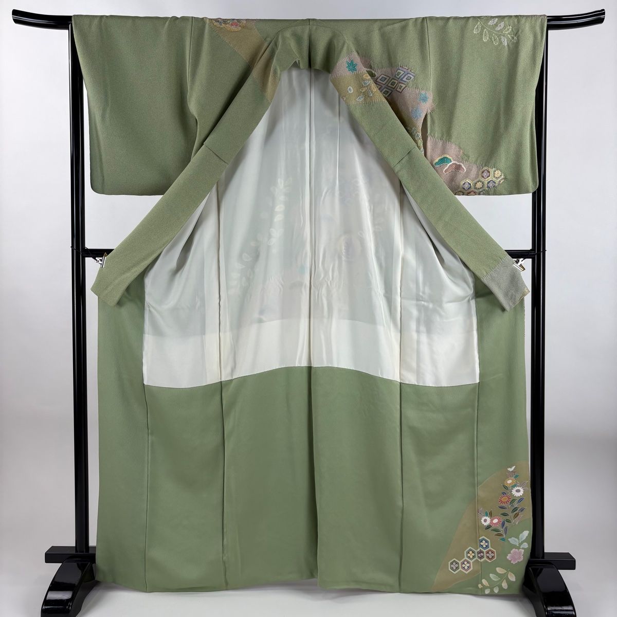 訪問着 身丈166cm 裄丈64cm M 袷 橘花 椿 金糸 刺繍 薄緑 正絹の検索結果