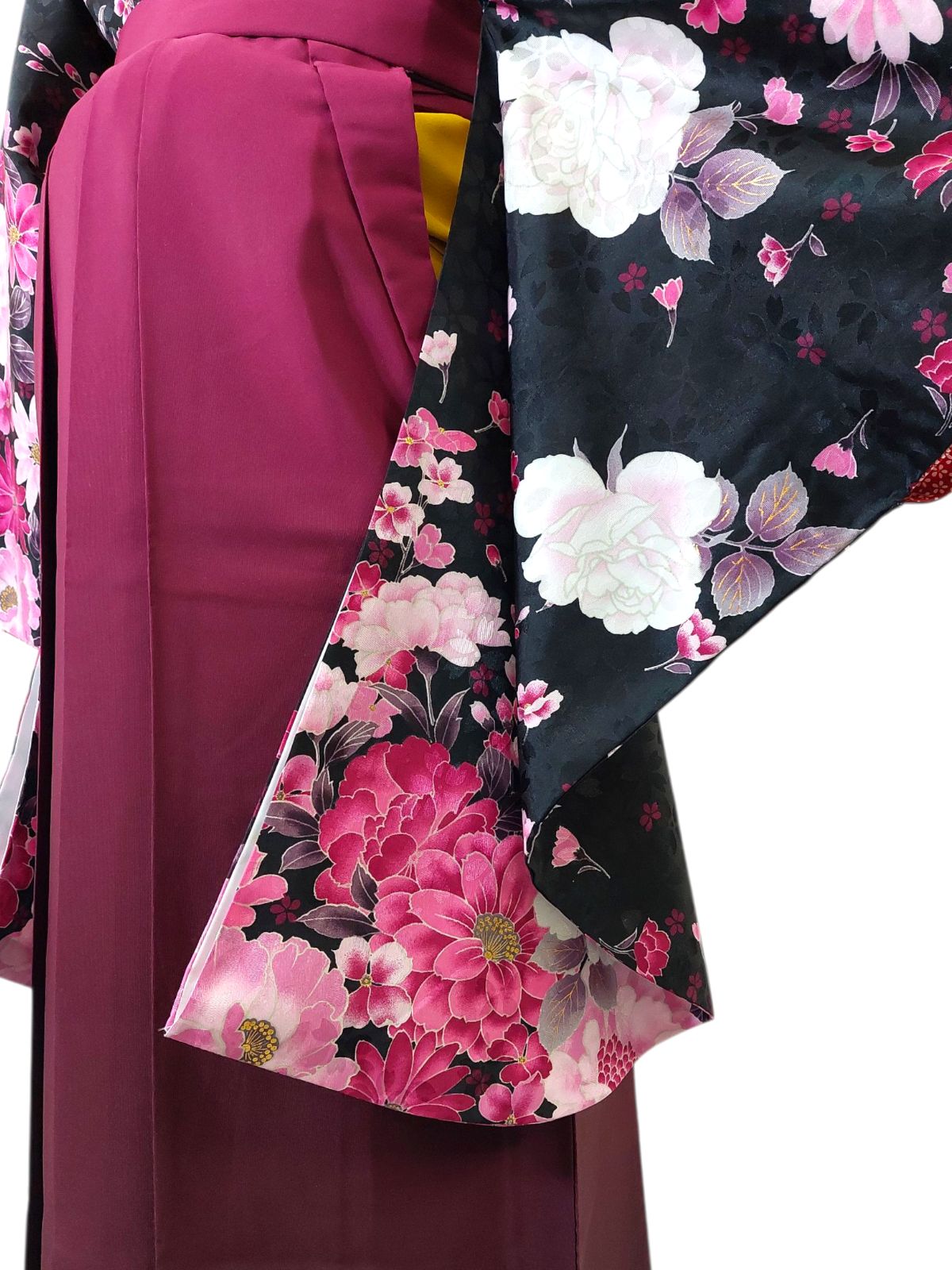 着物 袴 帯 3点セット セット販売 卒業式 に レディース袴セット 成人式 卒業式に 華やか和装 黒 赤 ピンク ぼかし 花柄 牡丹 95-13 GLOBALQUALITYIMPORTS_COM