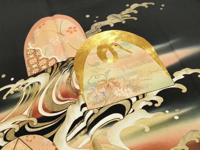 平和屋着物 豪華黒留袖 駒刺繍 立波飛鶴花文 暈し染め 金銀彩 正絹 CAAX5855ghの検索結果