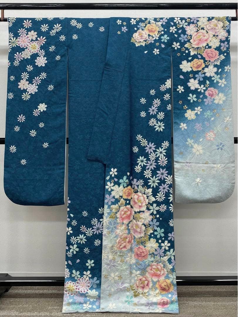 振袖 豪華 刺繍 金彩 紋意匠 大輪 薔薇 身丈171cm パールトーン加工済