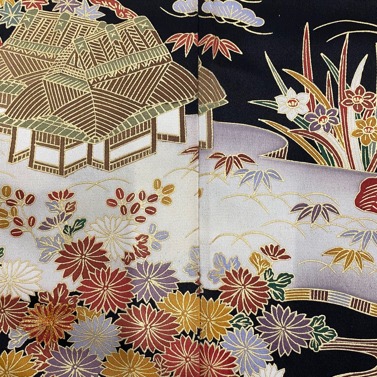 訪問着 身丈160cm 裄丈66cm M 袷 胴抜き 松竹梅 家屋 金糸 金彩 黒 正絹の検索結果