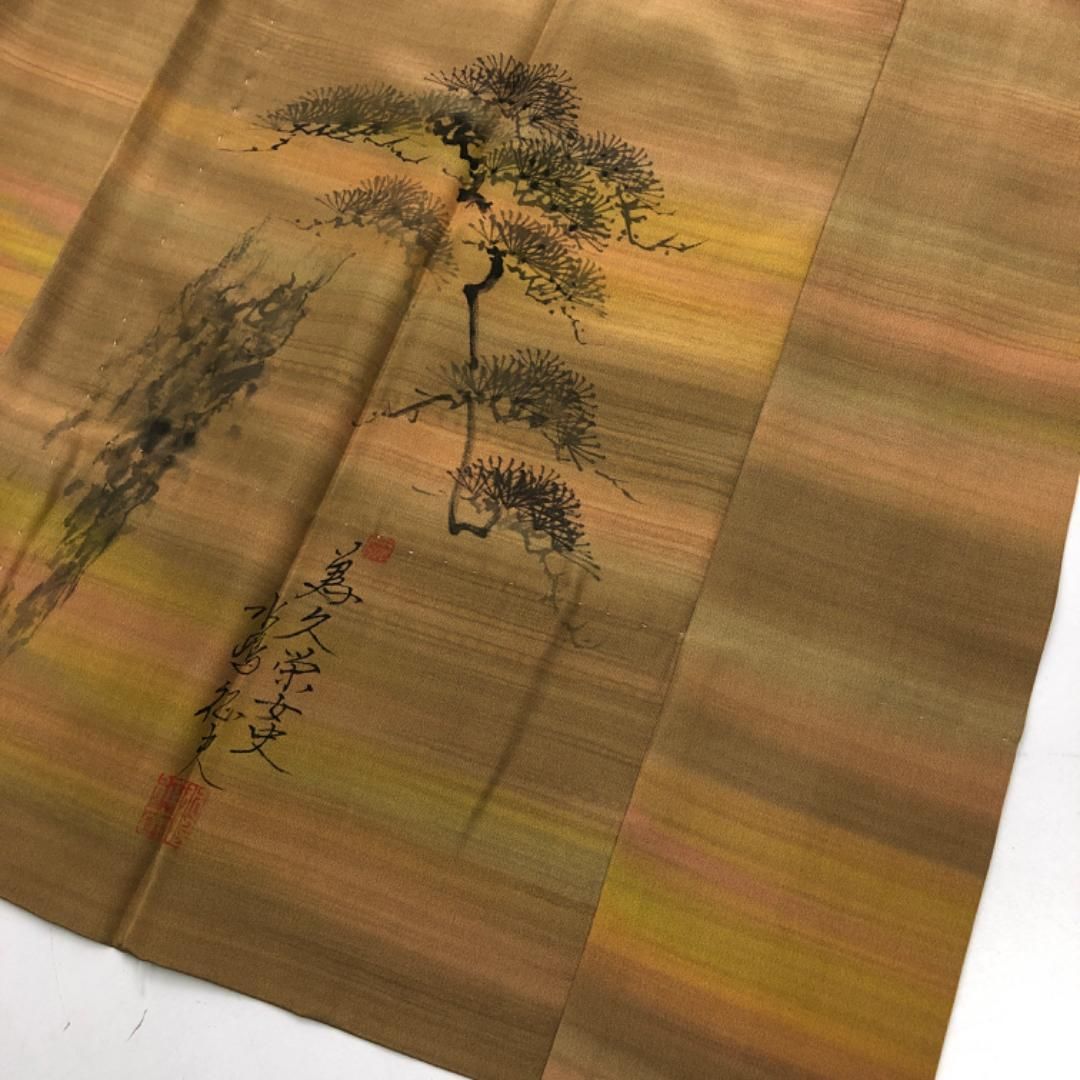 長襦袢 単衣 墨描き 松 桑染色 暈し 半衿付 J-341の検索結果