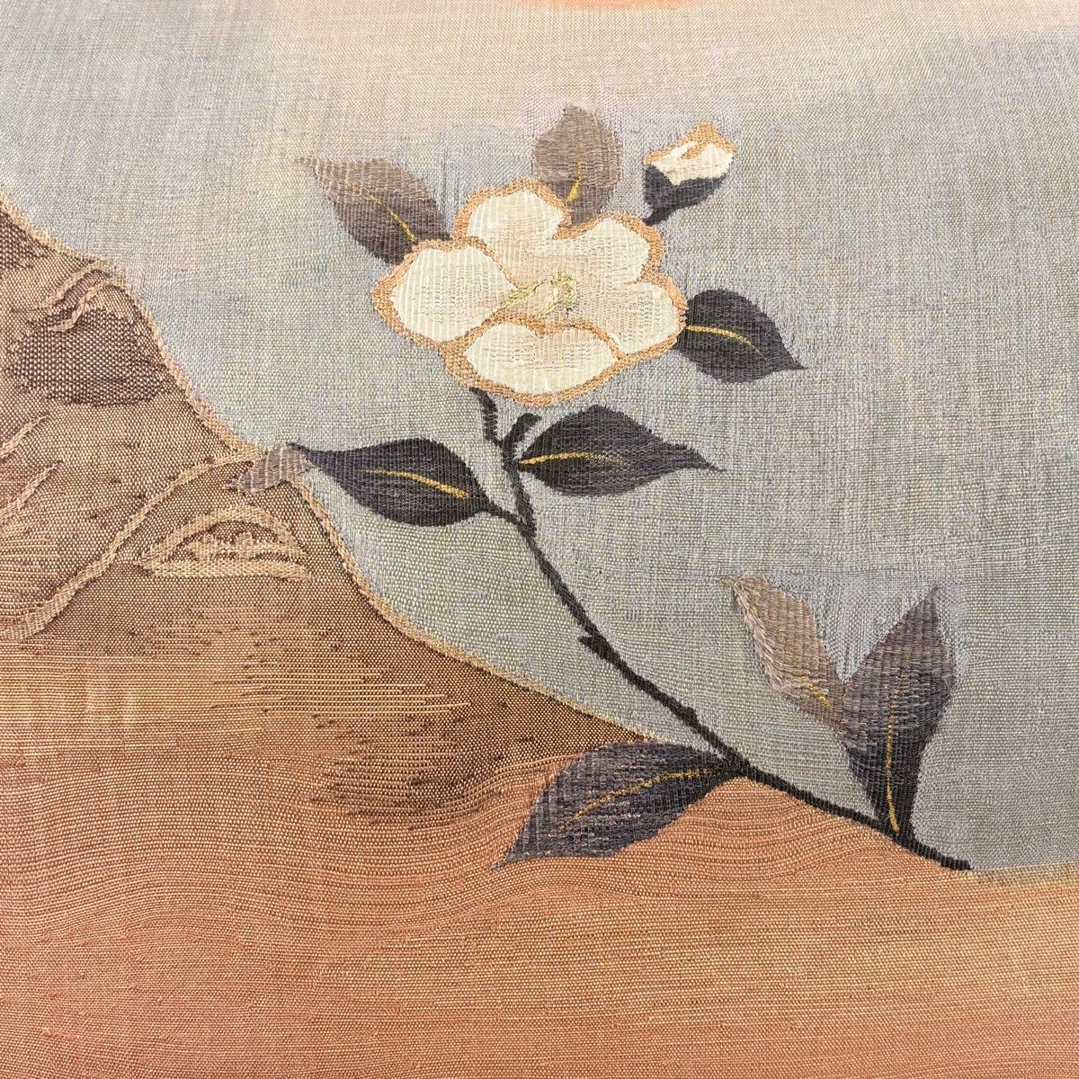 袋帯 秀品 椿 山並み 金糸 綴れ 薄オレンジ お太鼓柄 正絹 GLOBALQUALITYIMPORTS_COM