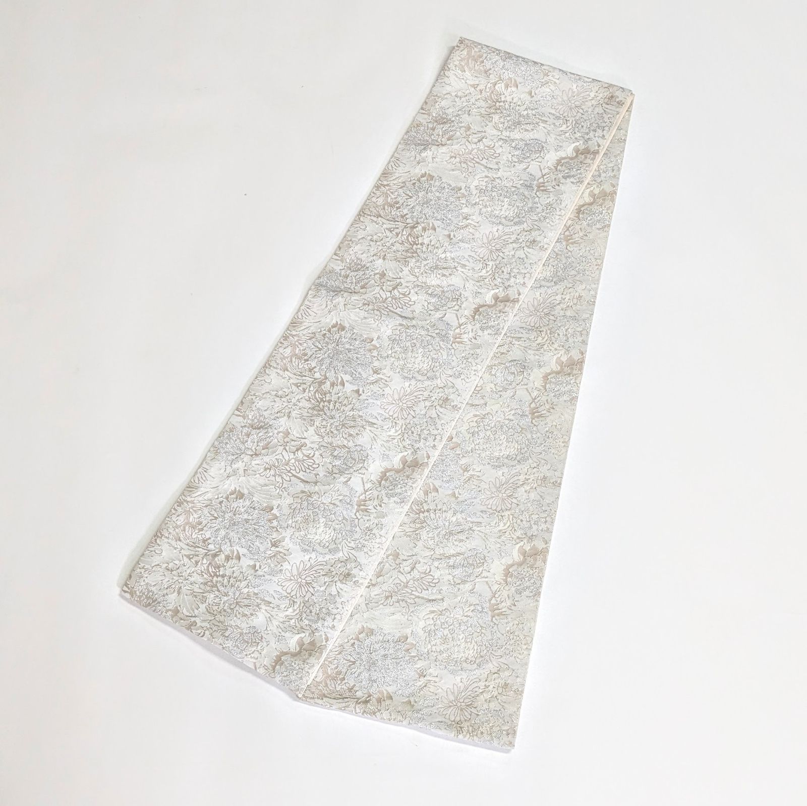 仕立て上がり 袋帯 白 ホワイト 銀 全通 ポリエステル 菊 kb13 GLOBALQUALITYIMPORTS_COM