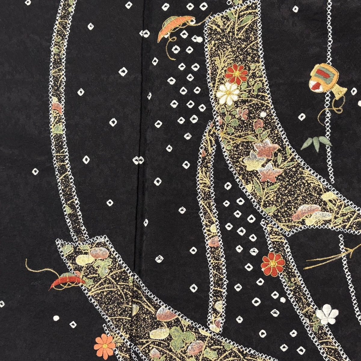 訪問着 身丈161.5cm 裄丈65cm M 袷 短冊 秋草 刺繍 絞り 黒 正絹 秀品の検索結果