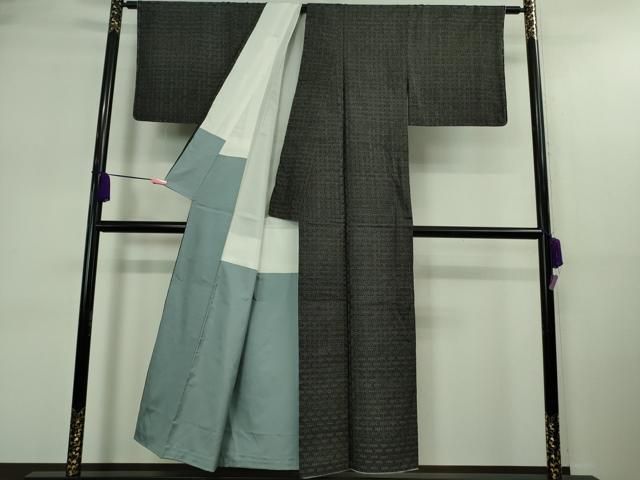 平和屋着物 上質な紬 単衣 格子 正絹 AABB2268fy