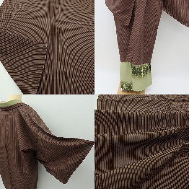 ❁tomihisa❁ リーフ柄 着物 正絹 身も心も熱くなれ 言葉にできない果報の温もり 仕付け糸付 ロング丈 お召地 道中着 6964