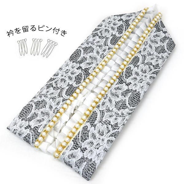 振袖用 重ね衿 パールビーズ レース フリル e-049 取り付けピン付き 振袖 成人式 卒業式 重ねえり 重ね襟 京都うさぎ堂 GLOBALQUALITYIMPORTS_COM